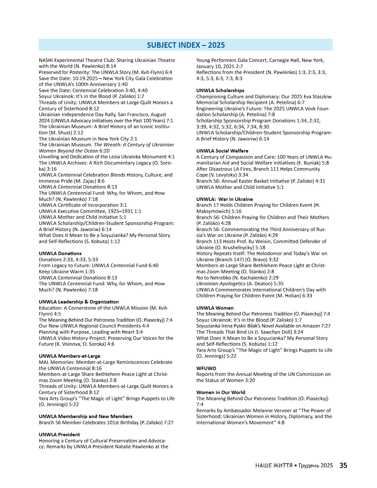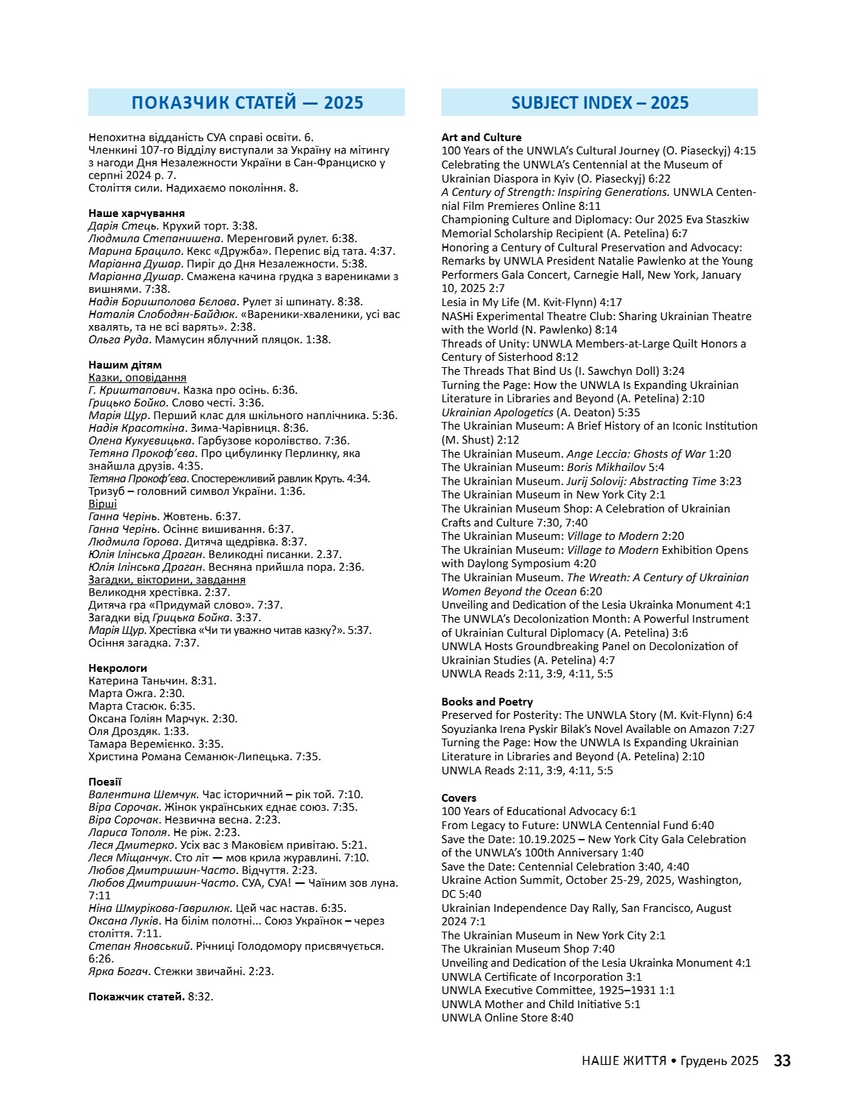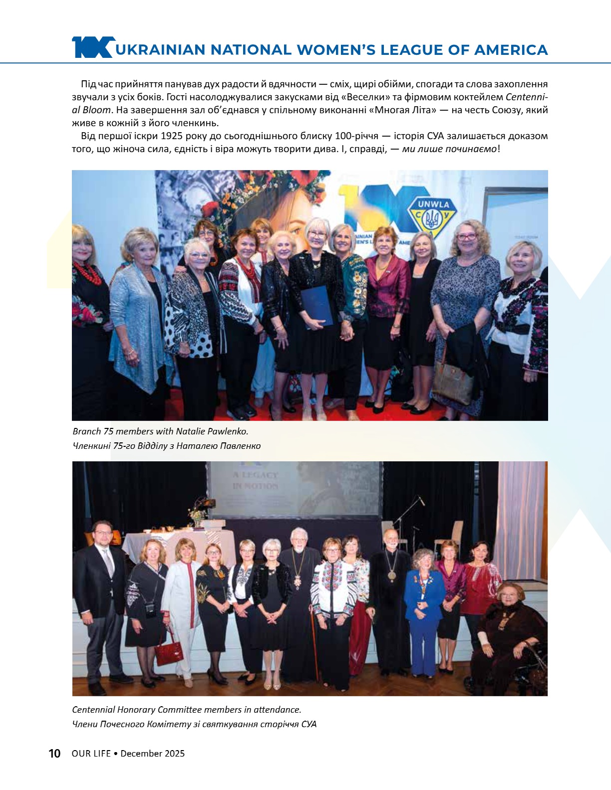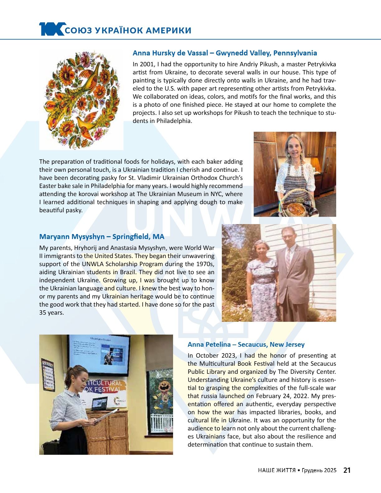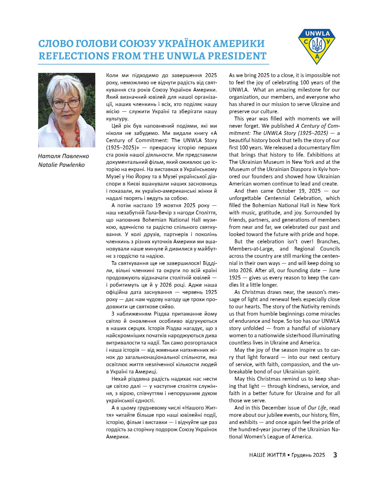 A CENTURY OF STRENGTH СТОЛІТТЯ СИЛИ XNS ̈XRXNG GENERATXONS ҇ѳѹИҐѳҜ҆О ҉О҃ОЛІ҇҇Я 8 • 2025 8 • 2025 ГРУДЕНЬ • DECEMBER ГРУДЕНЬ • DECEMBER ВИДАЄ СОЮЗ УКРАЇНОК АМЕРИКИ З 1944 РОКУ ВИДАЄ СОЮЗ УКРАЇНОК АМЕРИКИ З 1944 РОКУ PUBLISHED BY UNWLA, INC. SINCE 1944 PUBLISHED BY UNWLA, INC. SINCE 1944 ВИДАЄ СОЮЗ УКРАЇНОК АМЕРИКИ З 1944 РОКУ PUBLISHED BY UNWLA, INC. SINCE 1944 LIFE ЖИТТЯ НАШЕ OUR 8 • 2025 ГРУДЕНЬ • DECEMBER