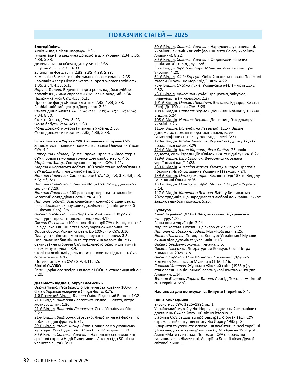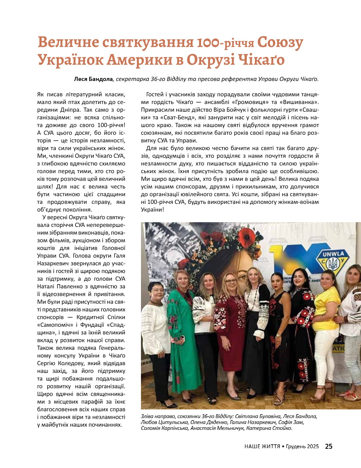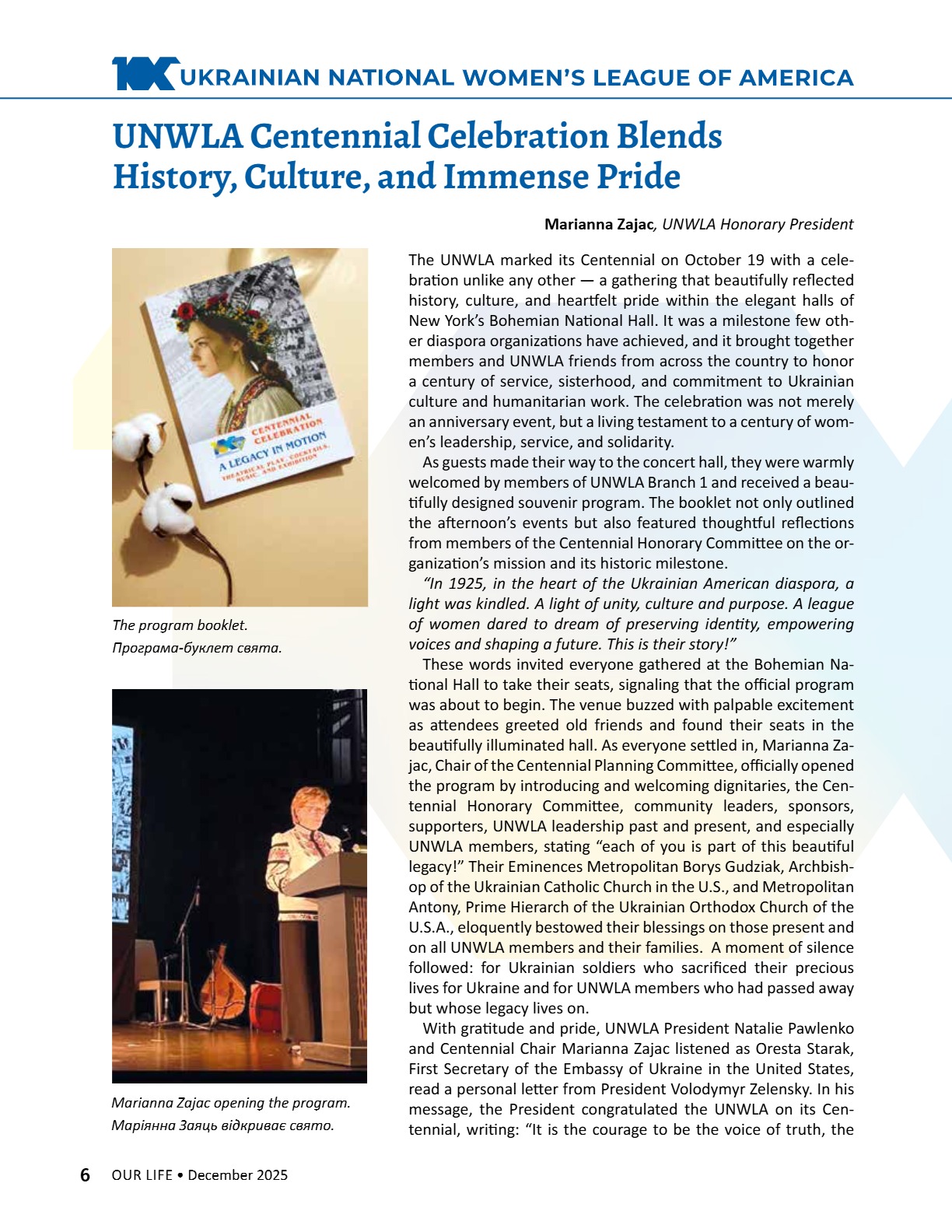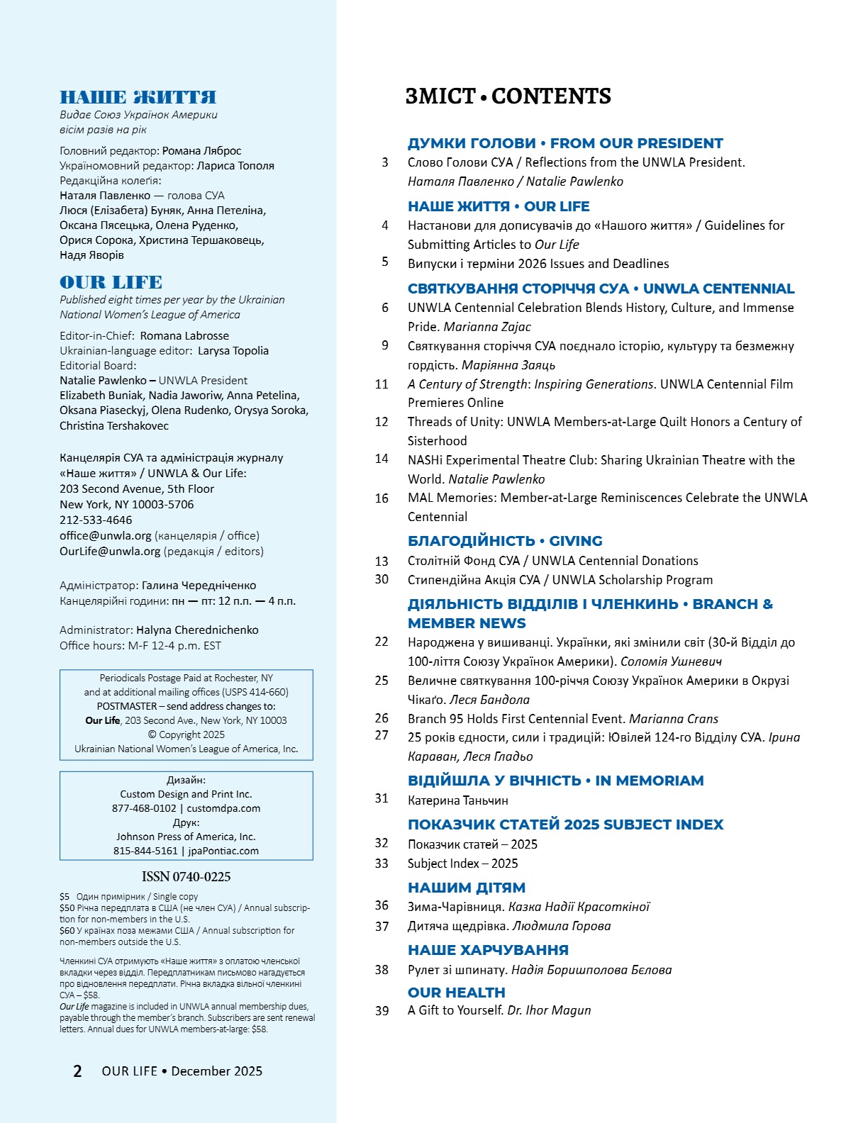 A CENTURY OF STRENGTH СТОЛІТТЯ СИЛИ XNS ̈XRXNG GENERATXONS ҇ѳѹИҐѳҜ҆О ҉О҃ОЛІ҇҇Я 8 • 2025 8 • 2025 ГРУДЕНЬ • DECEMBER ГРУДЕНЬ • DECEMBER ВИДАЄ СОЮЗ УКРАЇНОК АМЕРИКИ З 1944 РОКУ ВИДАЄ СОЮЗ УКРАЇНОК АМЕРИКИ З 1944 РОКУ PUBLISHED BY UNWLA, INC. SINCE 1944 PUBLISHED BY UNWLA, INC. SINCE 1944 ВИДАЄ СОЮЗ УКРАЇНОК АМЕРИКИ З 1944 РОКУ PUBLISHED BY UNWLA, INC. SINCE 1944 LIFE ЖИТТЯ НАШЕ OUR 8 • 2025 ГРУДЕНЬ • DECEMBER
