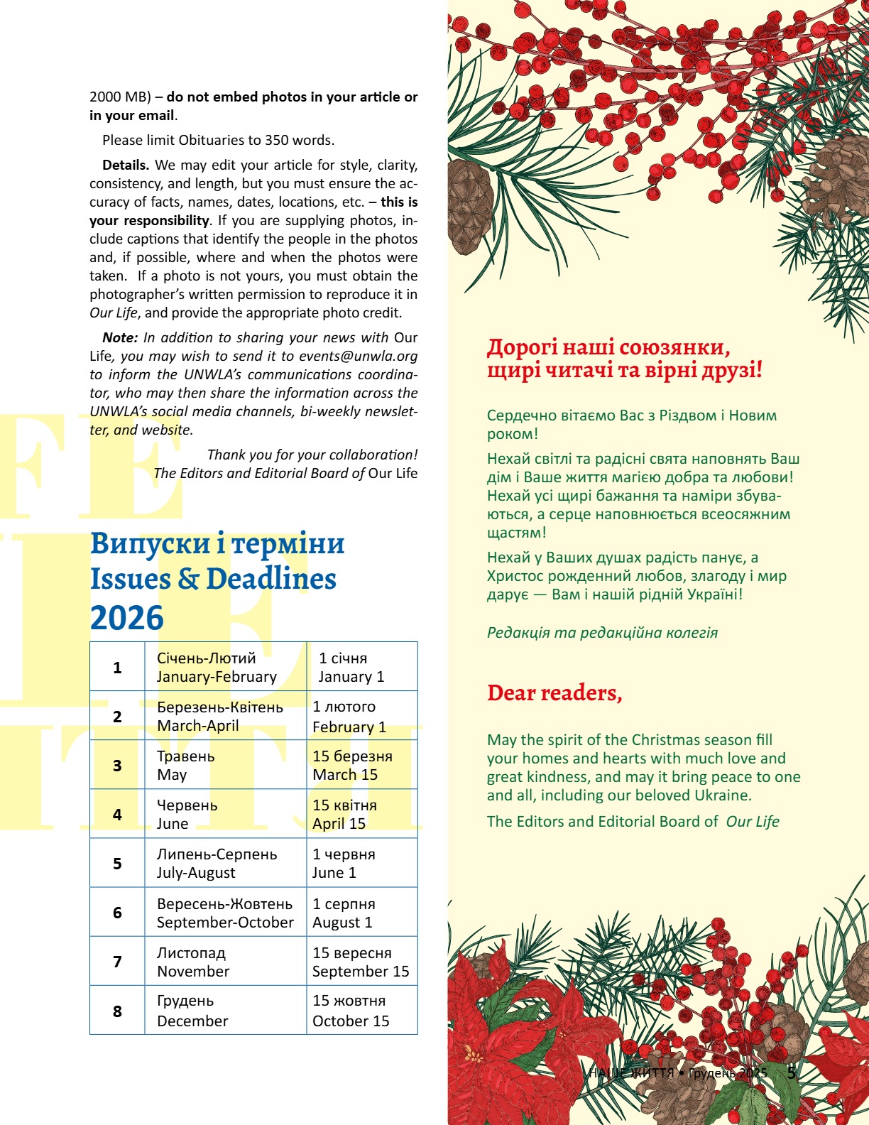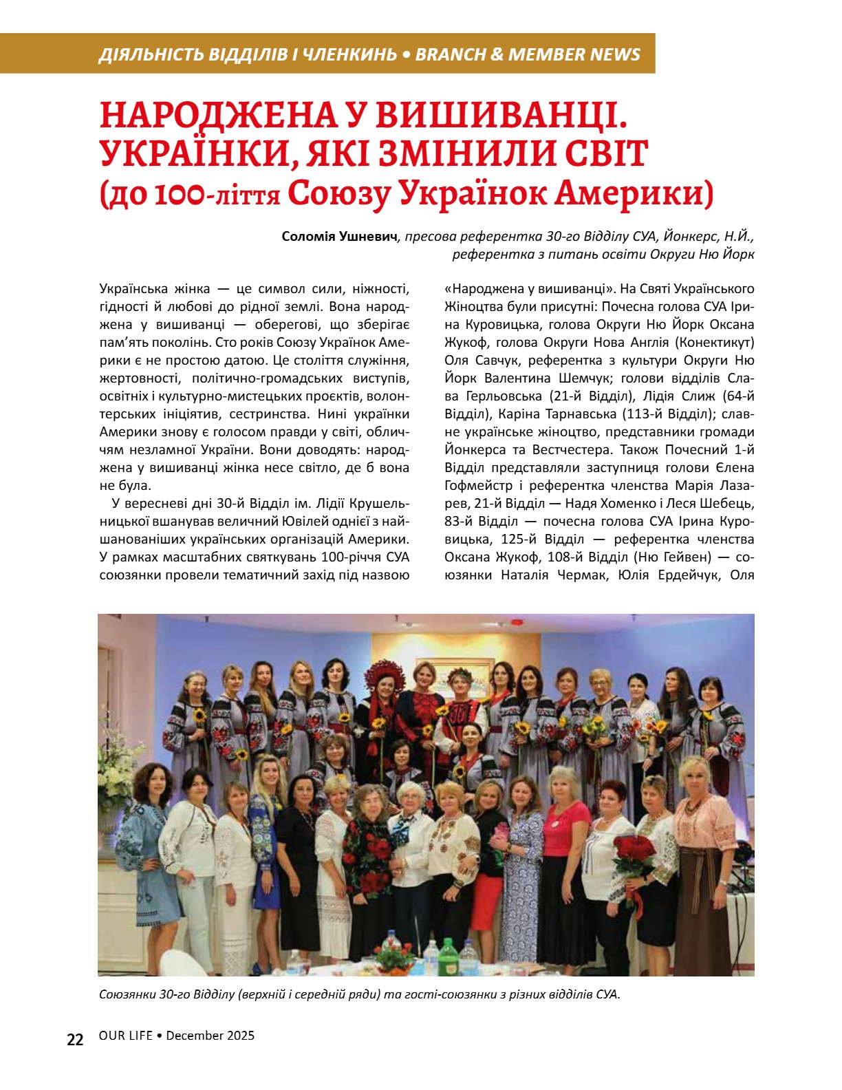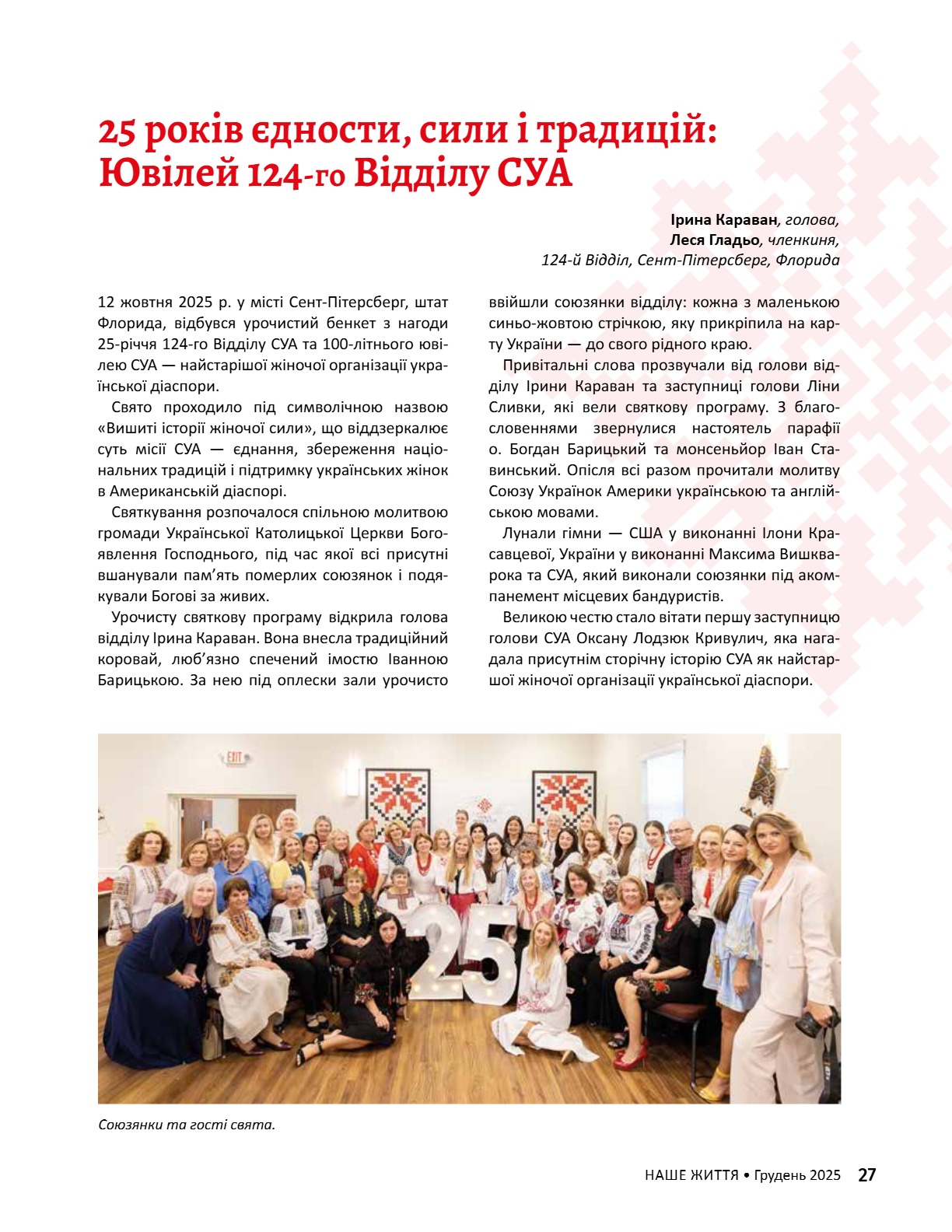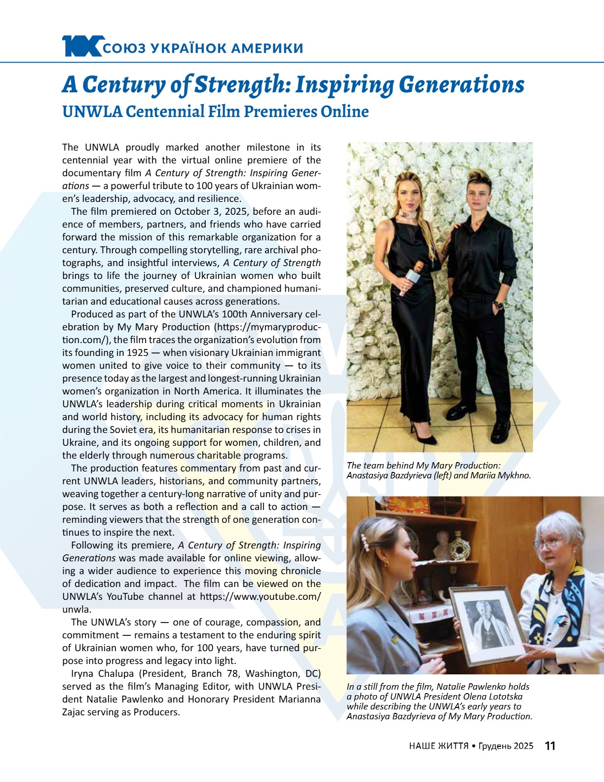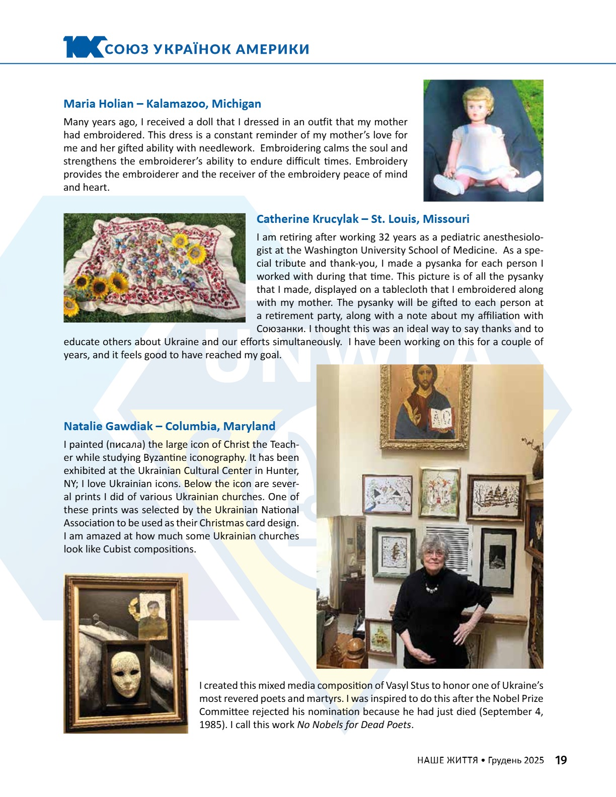 A CENTURY OF STRENGTH СТОЛІТТЯ СИЛИ XNS ̈XRXNG GENERATXONS ҇ѳѹИҐѳҜ҆О ҉О҃ОЛІ҇҇Я 8 • 2025 8 • 2025 ГРУДЕНЬ • DECEMBER ГРУДЕНЬ • DECEMBER ВИДАЄ СОЮЗ УКРАЇНОК АМЕРИКИ З 1944 РОКУ ВИДАЄ СОЮЗ УКРАЇНОК АМЕРИКИ З 1944 РОКУ PUBLISHED BY UNWLA, INC. SINCE 1944 PUBLISHED BY UNWLA, INC. SINCE 1944 ВИДАЄ СОЮЗ УКРАЇНОК АМЕРИКИ З 1944 РОКУ PUBLISHED BY UNWLA, INC. SINCE 1944 LIFE ЖИТТЯ НАШЕ OUR 8 • 2025 ГРУДЕНЬ • DECEMBER