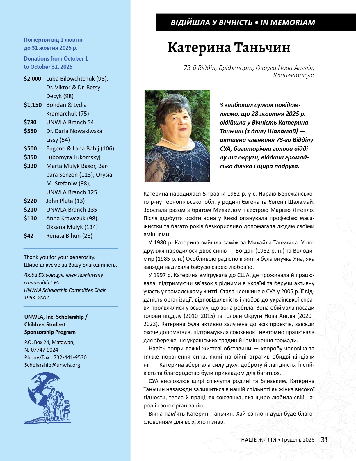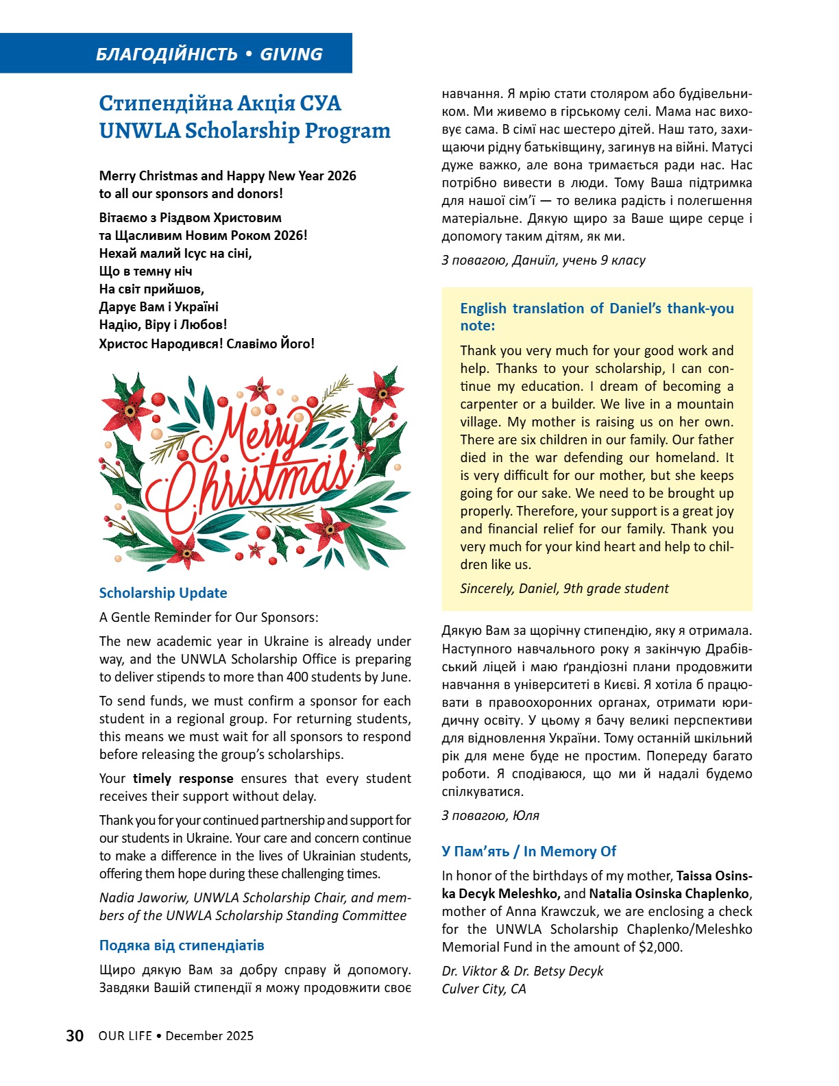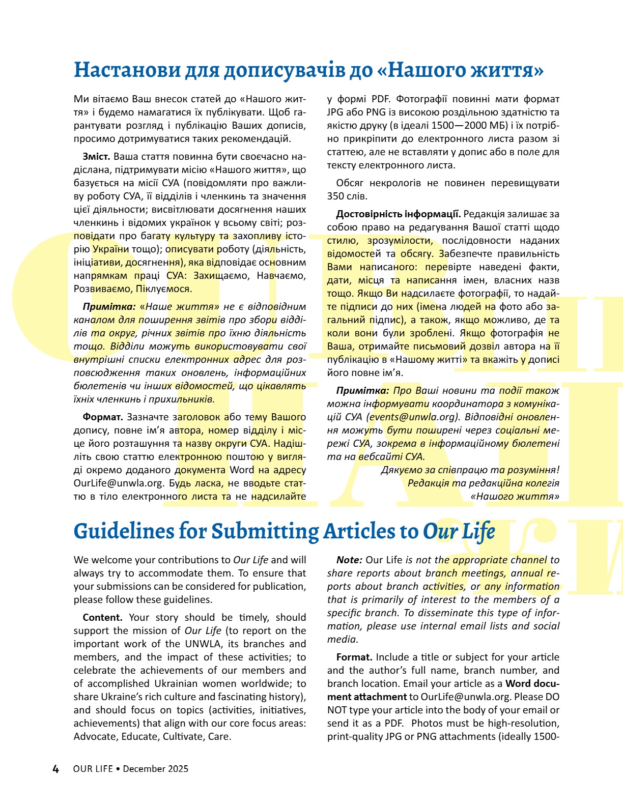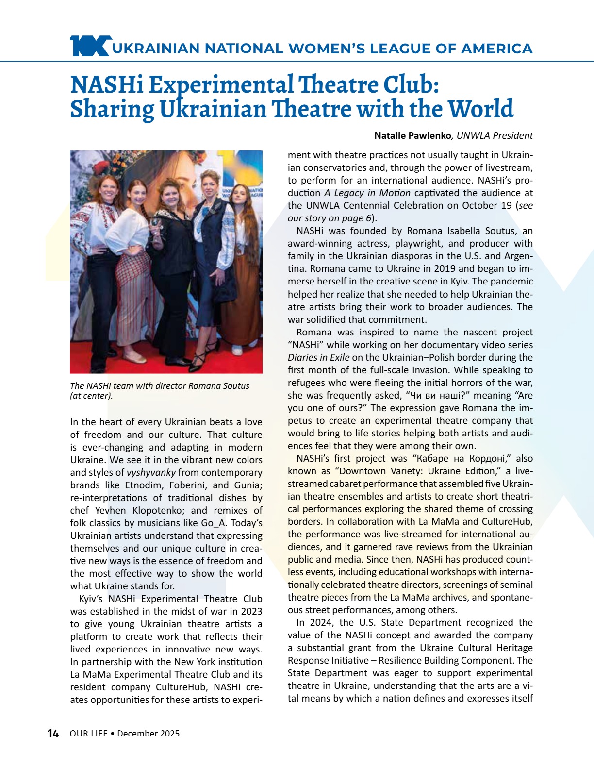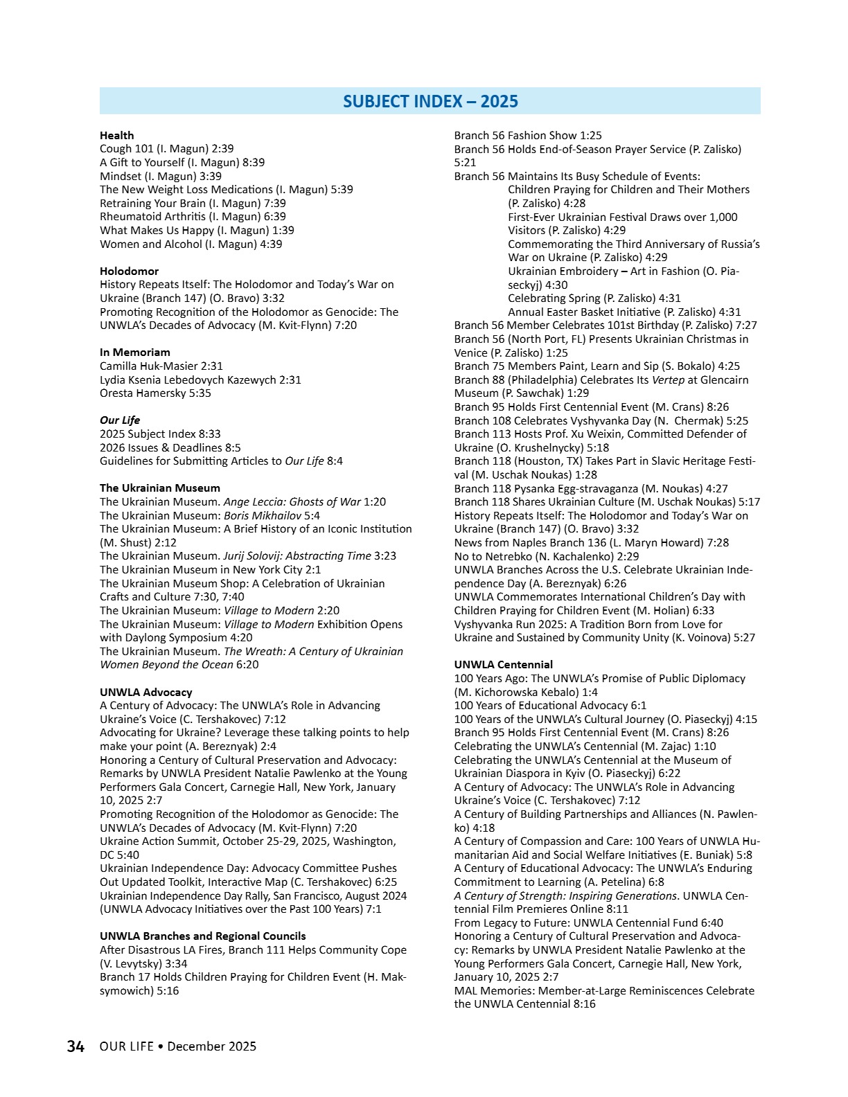 A CENTURY OF STRENGTH СТОЛІТТЯ СИЛИ XNS ̈XRXNG GENERATXONS ҇ѳѹИҐѳҜ҆О ҉О҃ОЛІ҇҇Я 8 • 2025 8 • 2025 ГРУДЕНЬ • DECEMBER ГРУДЕНЬ • DECEMBER ВИДАЄ СОЮЗ УКРАЇНОК АМЕРИКИ З 1944 РОКУ ВИДАЄ СОЮЗ УКРАЇНОК АМЕРИКИ З 1944 РОКУ PUBLISHED BY UNWLA, INC. SINCE 1944 PUBLISHED BY UNWLA, INC. SINCE 1944 ВИДАЄ СОЮЗ УКРАЇНОК АМЕРИКИ З 1944 РОКУ PUBLISHED BY UNWLA, INC. SINCE 1944 LIFE ЖИТТЯ НАШЕ OUR 8 • 2025 ГРУДЕНЬ • DECEMBER